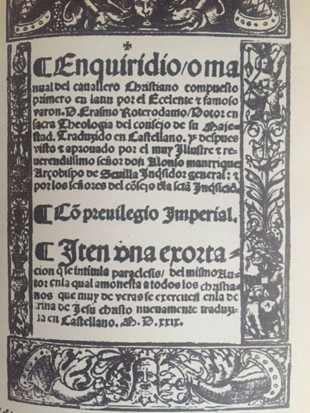 La difusión de su obra fue amplia gracias a la traducción que hizo del Nuevo Testamento en la que incluyó anotaciones críticas donde comenta la importancia de retomar los orígenes del cristianismo, pero la obra que realmente lo dio a conocer en la península fue el Manual del caballero cristiano, el cual se publicó en España en 1527, un año después de que viera la luz. Sin embargo, la verdadera razón de por qué Erasmo fue tan aceptado por las élites españolas fue por los preceptos religiosos e ideales cristianos que plantea en su obra.