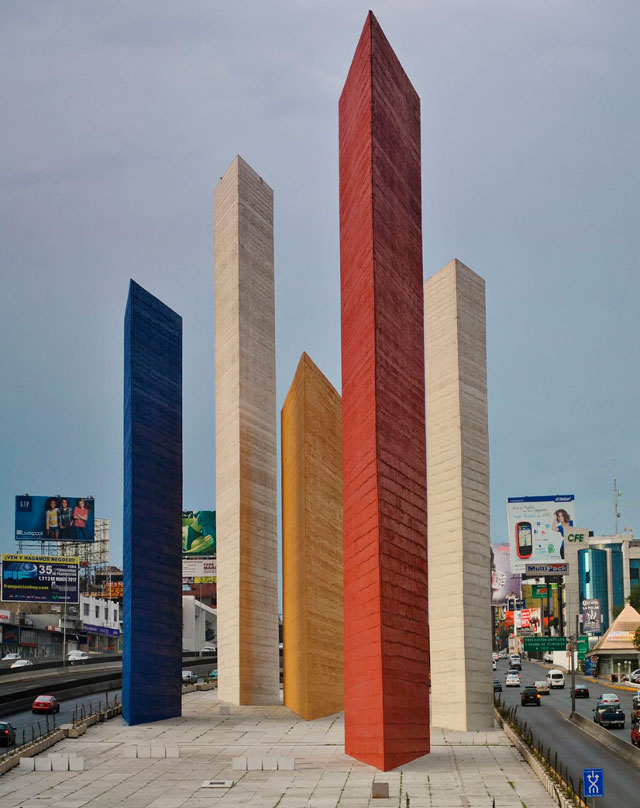 Resulta importante recordar que, para mediados de la década de 1950, la construcción del suburbio de Ciudad Satélite se encontraba muy avanzada y que, para la creación de la entrada simbólica de dicho fraccionamiento, se tuvo la coautoría de Luis Barragán y Goeritz, quien aportó la idea y diseño de torres verticales, las cuales tenían un significado relacionado con lo divino y misterioso, intereses arraigados en el pensamiento de Mathias como lo constataron Felguérez y otros de sus colegas.[4] Es así, con la construcción de las Torres de Satélite, como comienza su etapa escultórica monumental.
