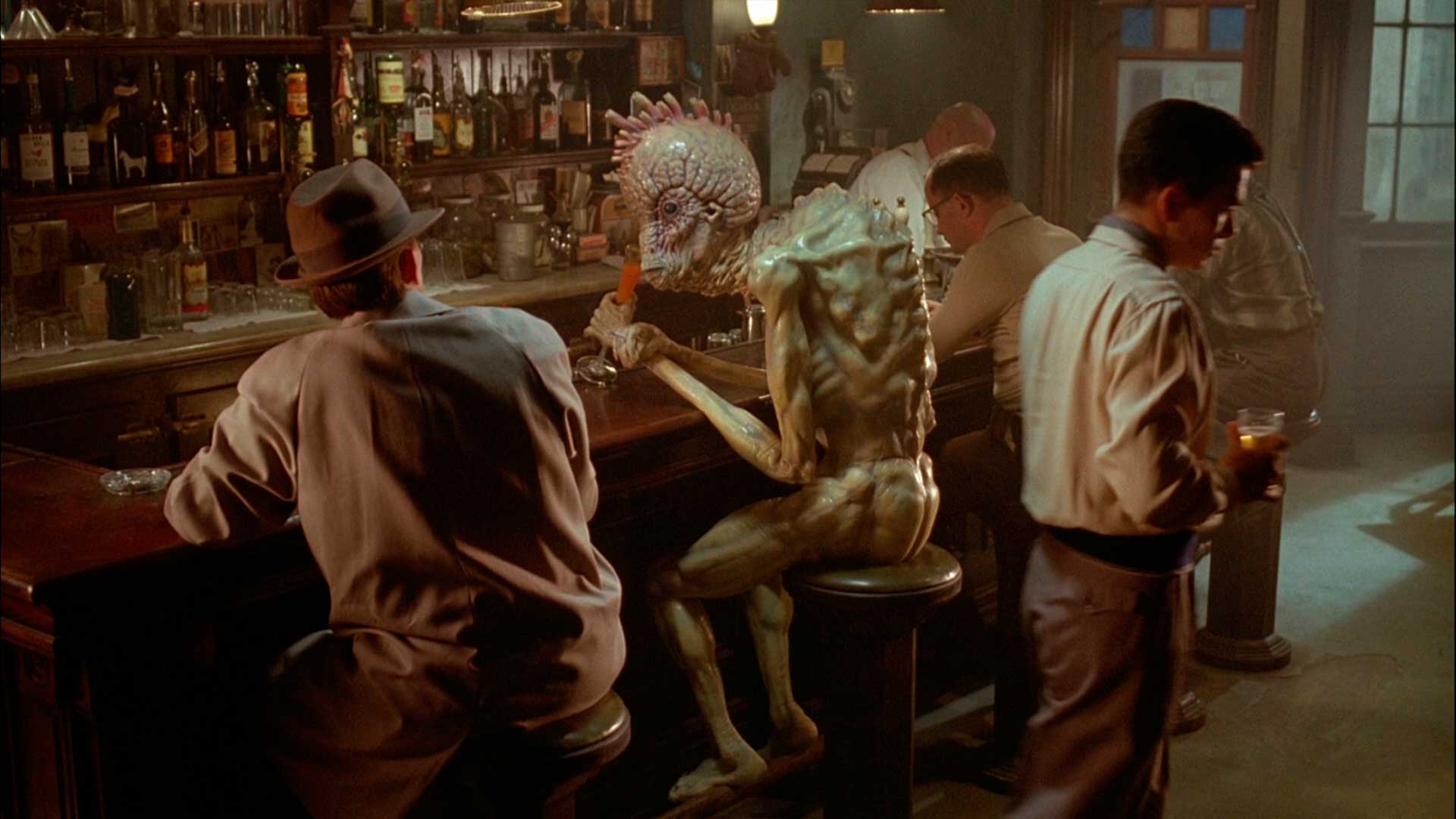 No ocurre una zoomorfización como en La Mosca (película que es la mejor prueba de cómo lo kafkiano influye la obra del director), sino que pasa algo distinto: una antropomorfización. Los insectos humanizados son comunes a lo largo del filme, incluso en diversas escenas éstos se llegan a comportar con más humanidad. En una de estas, Lee es llevado a la policía por consumir estupefacientes. Los policías rodeados de un aura de misterio abandonan su interrogatorio y lo dejan con un insecto: ¿es verdad lo que le acontece?
